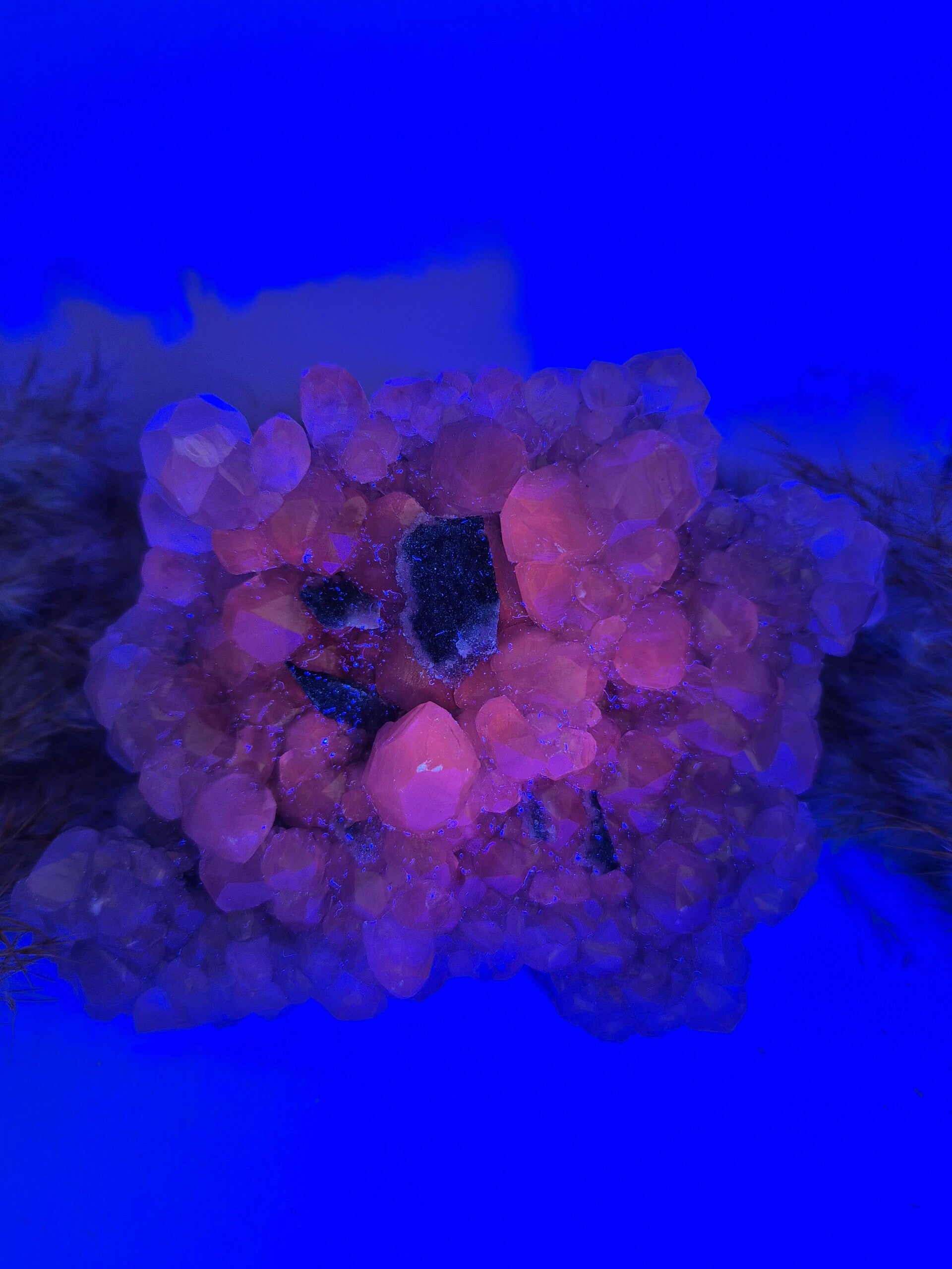 Sphalerit mit Calcit Cluster (UV-Aktiv)