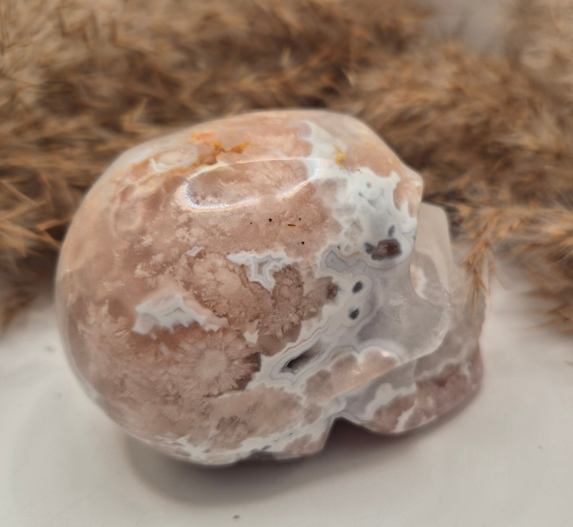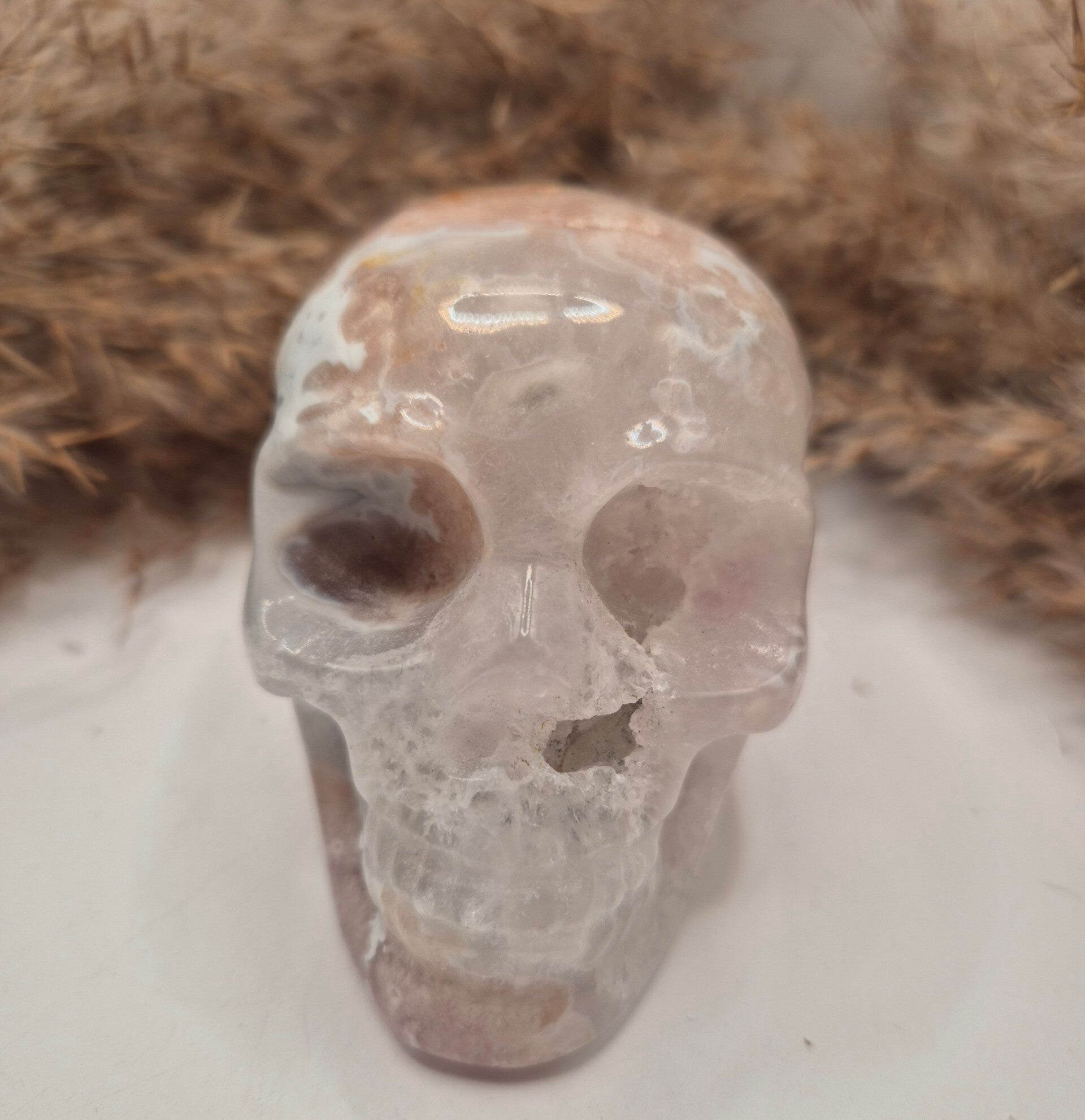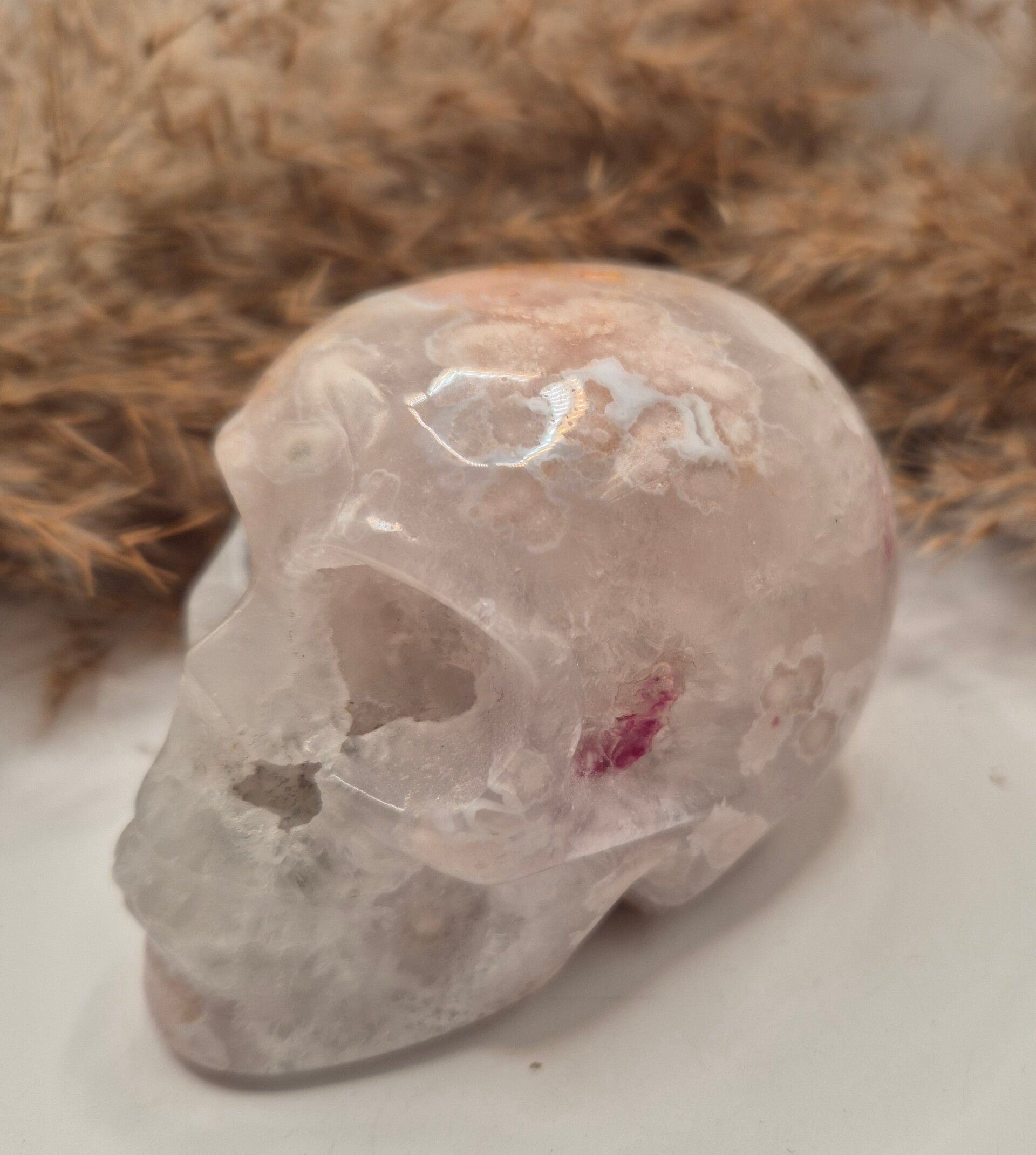Pink Amethyst mit Blumenachat Schädel