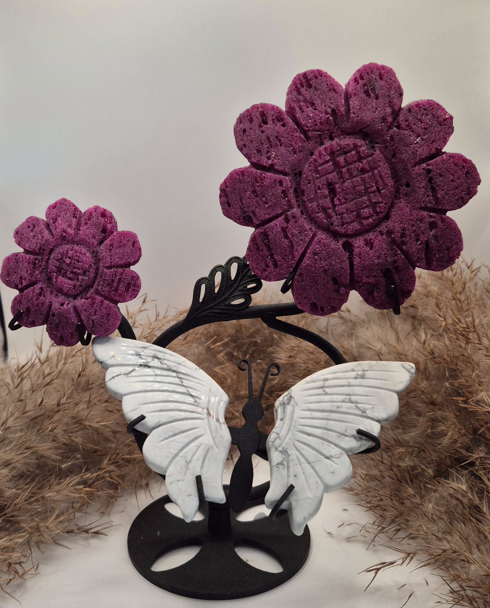 Ruby Calcit Blumen und Magnesit Schmetterling UV aktiv